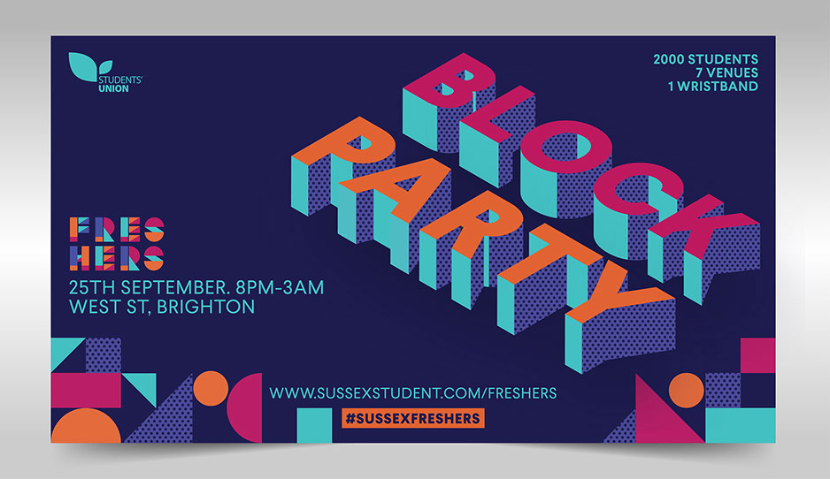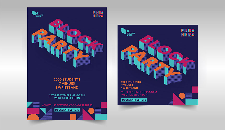 Description: Concept creation and styling to encourage attendance at Freshers events. I was particularly focussed on making the designs more relevant, bright and instagrammable.