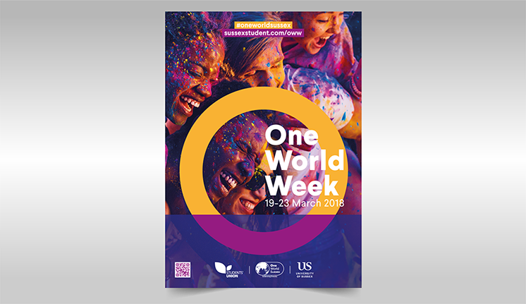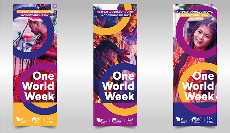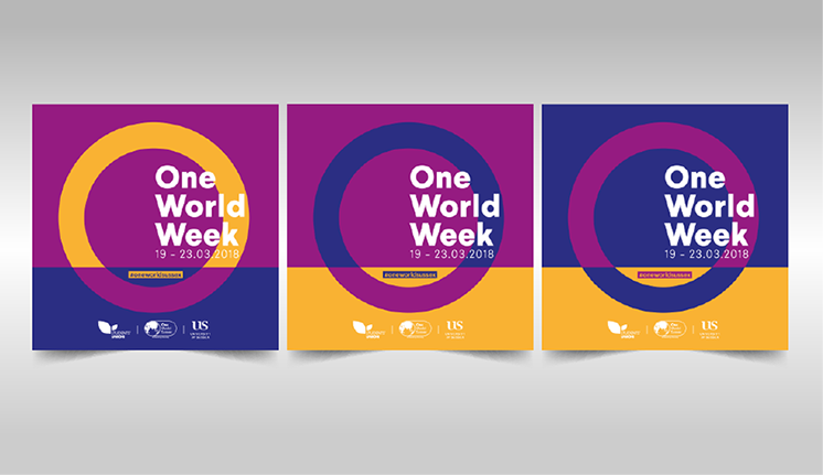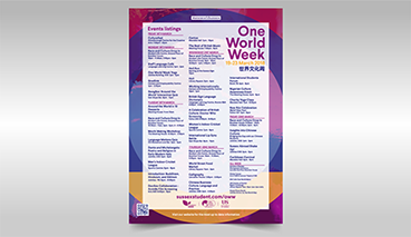 Description: One World Week is an event celebrating and promoting different cultures. I created a design style, marketing materials and templates to give the event a clear style and attract student attendees.