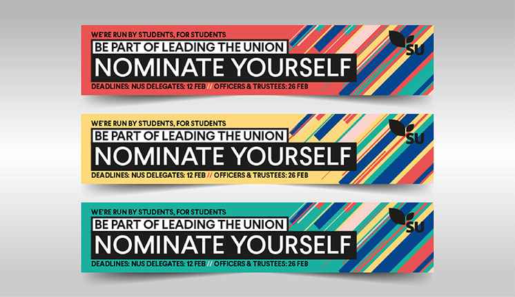 Description: The design and implementation of a vibrant campaign to encourage students to get involved in the Union Spring Elections, by voting or nominating themselves.
